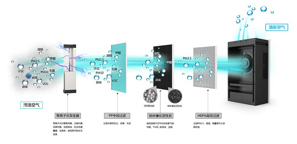 空氣消毒器廠家講等離子體利用特斯拉放電原理,形成等離子體空間凈化網,直接電離病毒、細菌、螨蟲、甲醛、TVOC、流感病毒、傳染源等有毒有害物質,從根本上予以殺滅,同時釋放大量正負離子。采用高效HEPA復合濾網,增加了除甲醛、PM2.5、TVOC的效果。